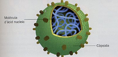 seu interior es troba la molècula d'àcid nucleic(DNA o RNA)