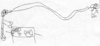 hipopòtams que pesen 100 Kg. cadascun. Els nens i nenes comproven la impossibilitat d'aixecar un animal tan gros emprant únicament la força dels braços i tan fàcil com resulta fent servir una eina: la palanca ! També s'adonen que aixecar l'hipopòtam amb la palanca llarga costa menys que fer-ho amb la curta, de manera que poden deduir que l'esforç per aixecar l'hipopòtam és menor en funció de la major longitud del braç de la palanca. |
