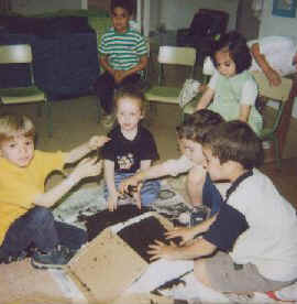 HI PODEM FER FIGURES ÉS DE COLOR MARRÓ-VERMELLÓS. QUAN LA TOQUEM LA NOTEM FREDA I MOLLA. QUAN ESTÀ MOLT MOLLA S’ENGANXA. EMBRUTA LES MANS. QUAN ESTÀ MOLLA ÉS TOVA. |