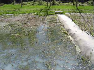 parcel·les plantades amb canyís que funcionen com a depuradora de