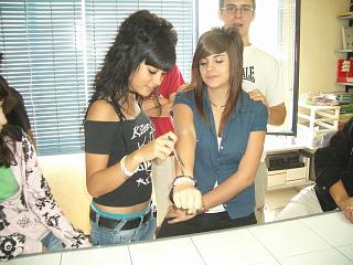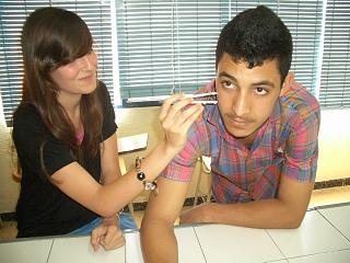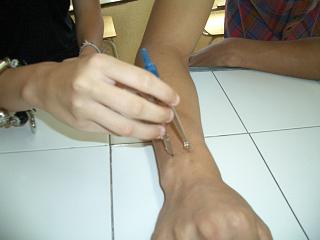 1 . Introducció Les sensacions del tacte es reben gràcies als receptors que hi ha a la pell. Segons la concentració d'aquests receptors, una zona determinada del nostre cos és més sensible o menys. 2. Objectius Treballant en parella, esbrinar quines parts del teu cos tenen més sensibilitat (front, galta, avantbraç, palmell de la mà, dors de la mà, extrem d'un dit, braç). 3. Material Un mocador llarg, un regle i un compàs en el qual es puguin posar dues puntes metàl·liques. 4. Procediment 1) Tapa amb el mocador els ulls del teu company o companya perquè no pugui veure res. 2) Separa les puntes del compàs 5 mm i toca suaument la superfície de la pell del teu company en una de les zones escollides. El teu companys t'ha de dir si ha sentit 2 punts o només 1. 3) Després d'aquesta primera experiència, separa les puntes del compàs 10 mm i repeteix les proves anteriors. 4) Fes els mateixos exercicis augmentant la separació de les puntes del compàs 5 mm cada vegada. 5) Finalment, heu de canviar els papers. El qui ha estat amb els ulls tapats haurà de tocar amb el compàs el seu company o companya. 6) Anoteu les dades obtingudes en una taula de resultats. 5. Qüestions 1) Quina part del cos de les estudiades permet percebre dos punts quan les puntes del compàs estan molt juntes? 2) Quina part del cos és més sensible? Quina té menys sensibilitat? 3) Hi ha diferències de sensibilitat entre la pell del teu company o companya i la teva? A què creus que es deuen aquestes diferències? |