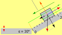 applet simula el movimiento sobre un plano inclinado de un objeto, con