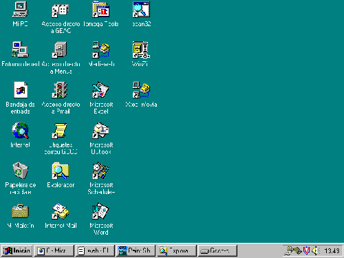 L'escriptori predeterminat consta d'una sèrie d'icones (representacions gràfiques d'objectes): Mi PC, Bandeja de entrada, Entorno de red i Papelera de reciclaje.
