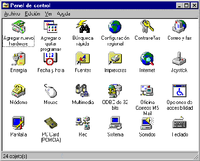 En el panell de control hi ha les icones que ens permeten configurar diferents aspectes de Windows 95.