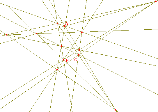 Una estructura désmica relativa a un triángulo ABC es un conjunto de 12 puntos (entre ellos A, B, C) y 16 rectas, de forma que cada recta contiene 3 puntos y cada punto está en 4 rectas.