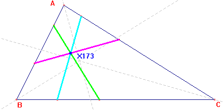 Si por el punto X(173) se trazan perpendiculares a las bisectrices, los segmentos de perpendicular que interceptan los lados son de la misma longitud.