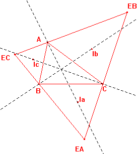 Sean Ea, Eb, Ec los excentros; Ia, Ib, Ic los incentros de EaBC, EbCA, EcAB. Entonces AIa, BIb, CIc concurren.