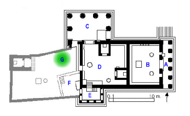 del temple (D) és formada per diverses cambres i té, a l'extrem oposat de l'entrada,