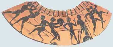 ELS JOCS OLÍMPICS L'esport a la Grècia antiga A la Grècia clàssica els exercicis físics eren, al costat de l'aprenentatge de les lletres i de la música, una part fonamental de l'educació dels nois. A partir dels dotze anys, almenys en les famílies benestants , el noi era confiat a un preparador que l'instruïa en el gimnàs o la palestra -un espai cobert de sorra a l'aire lliure quadrat i voltat de vestidors, banys i altres sales. |