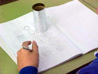 Hem vist que distorsionava algun objectes que posàvem davant seu damunt la taula (el llapis semblava una U) i ens hem posat a dibuixar grups de línies i copiar com les veiem reflexades al cilindre.