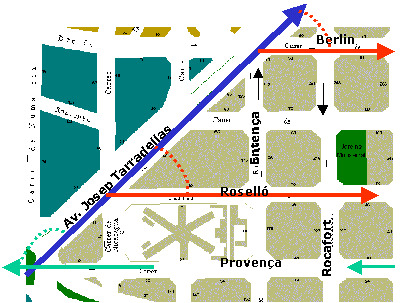 Así, el coche que va por la Av. Tarradellas y gira