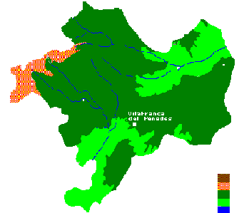 Límits :Baix Llobregat, Garraf, Anoia, Alt Camp, Baix Penedès.