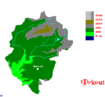 El solc de Coornudella-Ulldemolins, que amb el priorat històric, integra l´Alt Priorat a l´area nord oriental de la comarca i el nucli del comptat de Prades que s´entenia pel Baix Camp.El Baix priorat que comprenen la resta del territori forma part de la depressió de Móra i se centre en el curs baix del riu Siurana i a l´entorn de Falset.La vegetació natural es caracteritza per l´alzinar i sobretot per la garriga i els pasturatges,resultat de la desforització continuada;els sectors mutanyosos mes enlairatssi fa també l´alzinar muntanyenc i el roure Valencia, i els vassants de les muntanyes de Prades, el pi blanc i el pi roig.