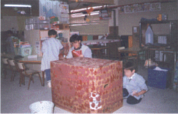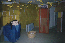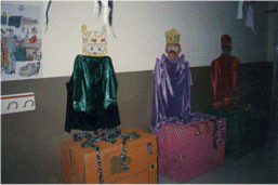 passadissos fent un pessebre Els nens pinten caixes. Els pares ens porten robes velles per
