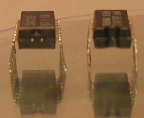 | Monta los condensadores y también los arrays. El común de los arrays son para el de 5x1 el pin izquierdo (según la foto de arriba) y ... sí sobra una pata, córtala o será imposible ponerlo. Para los otros dos arrays el común está en la parte más cercana a los conectores (tres imágenes lo dicen todo). |