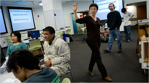 "The Massachusetts Institute of Technology (MIT) has changed the way it offers some introductory classes. Prof. Gabriella Sciolla at a class on electricity and magnetism".