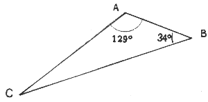 on A i B són els dos extrems de la badia i C el peu del cim. A més, l'angle d'elevació del cim vist des del punt A és de 3º.