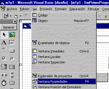 barra d’eines>:Nota: Si no veieu la caixa d'eines, cliqueu en l'opció del menú indicada en la figura següent i apareixerà. ![]() El valor de la propietat (Nombre) dels objectes és bo que segueixi un criteri: veure els prefixos recomanats per als objectes.