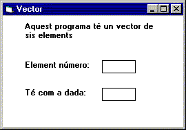 Executar el programa m3p1.exe per conèixer el seu comportament. Veure el llistat del codi del programa, m3p1. Executar Visual Basic per editar el projecte (acabat): m3p1.vbp. ArraysAquesta activitat, de la qual es mostra el formulari principal,![]() té la finalitat de treballar els conceptes bàsics de l'ús d'una variable del tipus array que en aquesta activitat és un array amb un sol índex (en aquest cas, els arrays s'anomenen vectors). Creeu un directori nou: C:\VBCurs\VBActivi\m3\p1 i un nou projecte, en aquest directori, que anomenareu m3p1 en el qual heu de: