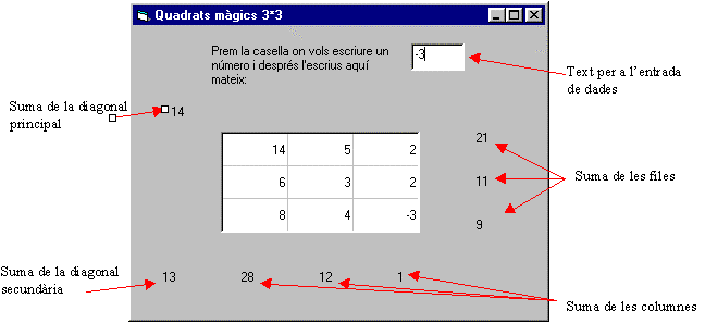 Quan acabeu de preparar el programa podeu fer el següent quadrat màgic: ![]() Ha de quedar una cosa així: ![]() ExercicisNo n'hi ha. |