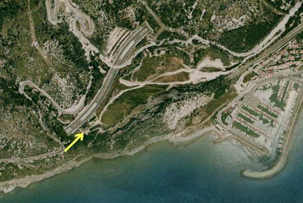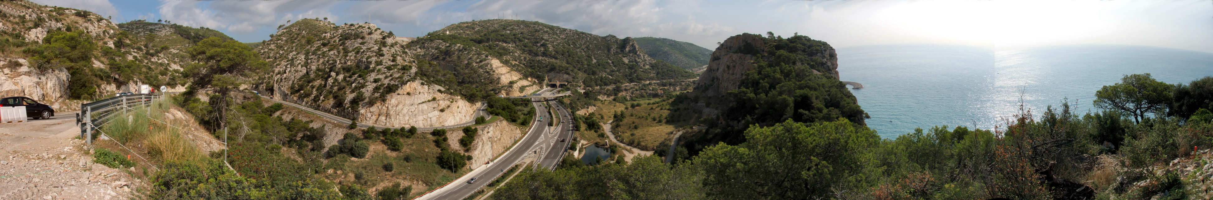 11:17. Panorámica (ampliable) del cruce de la C-31 y la C-32 al oeste de Garraf.