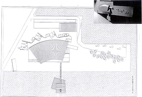 | A vegades, com en aquest cas, també hi ha planta de les cobertes: com si veièssim l'edificació a vista d'ocell que vola (el detall de dalt és una maqueta, que veurem més baix en detall): |