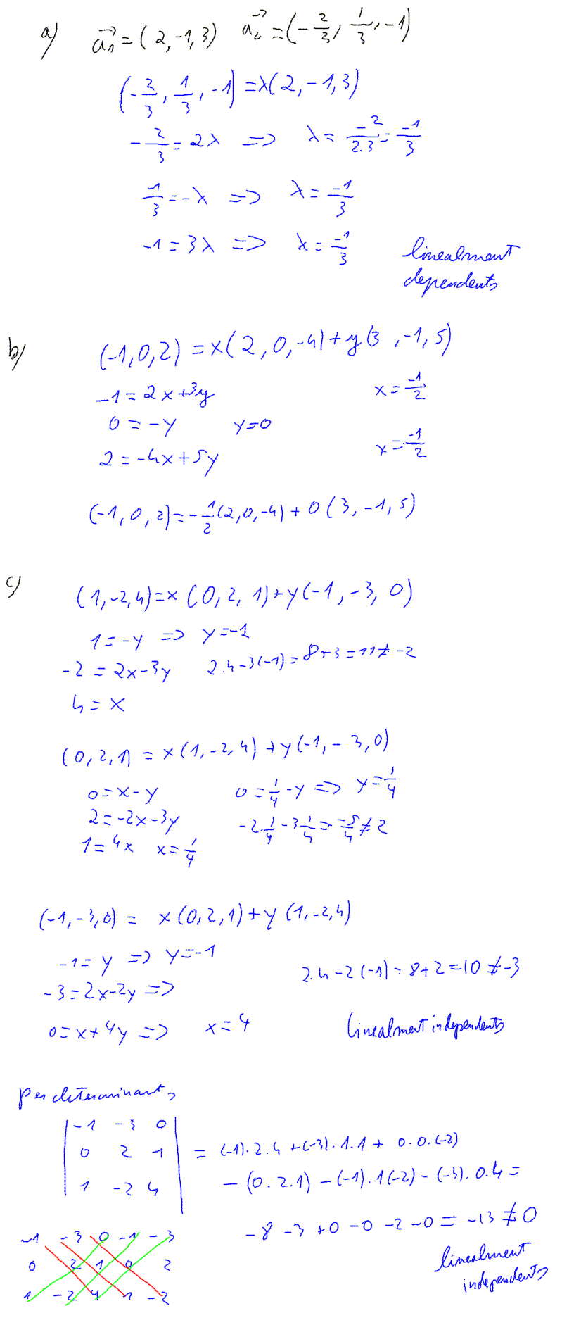 Digues si els següents conjunts de vectors són linelament dependents o independents: