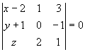 (x-2) · 0 · 1 + (y+1) · 2 · 3 + z · 1 · (-1) - (x-2) · (-1) · 2 - (y+1) ·1 · 1 - z · 0 · 3 = 0