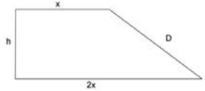 b) Calculeu l’abscissa del punt d’inflexió de `f(x)` i estudieu la concavitat de la funció. [0,75 punts] c) Sabem que l’àrea del recinte limitat per la corba `y = f''(x)`, l’eix de les abscisses i les rectes `x = 0` i `x = a`, amb `a > 2`, és `15 u^2`. Calculeu el valor de `a`. [1 punt] -(2022-juny-2-4)- a) Trobeu una funció polinòmica `y = g(x)` de grau `3` tal que talli l’eix de les ordenades en el punt `(0, 5)`, que la recta tangent a `y = g(x)` en el punt d’abscissa `x = 1` sigui horitzontal i que `g''(x) = 2x + 1`. [1 punt] b) Comproveu que la funció `f(x) = –x^3 + 6x^2` – 16 té una arrel a `x = 2` i que és estrictament creixent a l’interval `(0, 4)`. Utilitzeu aquesta informació per a calcular l’àrea determinada per la funció `f(x)`, l’eix de les abscisses i les rectes `x = 0` i `x = 4`. [1,5 punts] -(2022-juny-2-6)- Al pati d’una escola es vol crear una àrea de joc de `30` `m^2` per als més petits en forma de trapezi rectangular, de manera que la base més gran mesuri el doble que la base més petita, tal com mostra la figura, i que el costat oblic respecte a les bases (D) sigui tan curt com sigui possible. ![]()