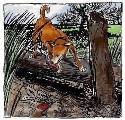 1. El perro y su sombra Un día un perro se dirigía hacia su casa sujetando fuertemente con los dientes un gran trozo de carne. Como que tenía que atravesar un arroyo que fluía rápidamente, pasó por encima de un tronco de árbol que hacía de puente. Cuando era a mitad del tronco, miró el agua y vio otro perro que llevaba otro trozo de carne