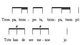 cantarella marcant molt accentuadament el ritme, el que fa de cap assenyala