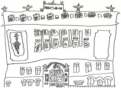 Hemos dibujado la fachada de la escuela que es un edificio muy antiguo y las palmeras del patio.