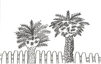 Hem dibuixat la façana de l’escola, doncs és un edifici molt antic, i les palmeres del pati.
