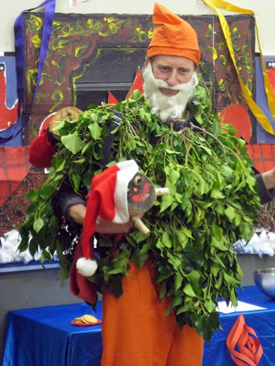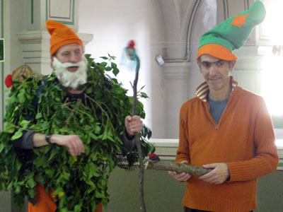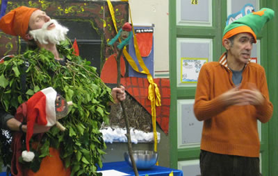 L'oncle Buscall i el seu cosí han portat els tions a l'escola! L'Oncle Buscall té cura dels tions que es desperten als arbres, d'on els despenja i els lliura a la canalla perquè els facin cagar. |