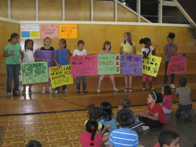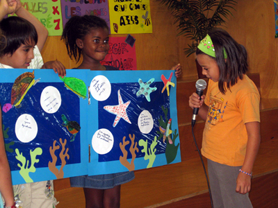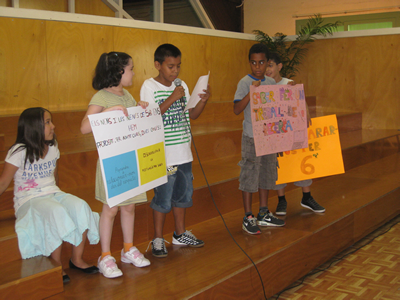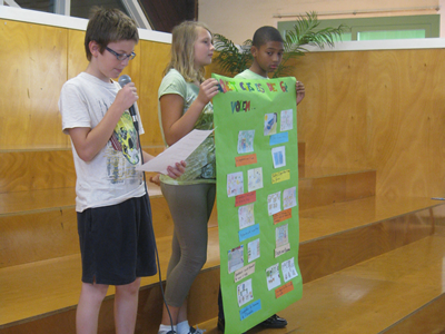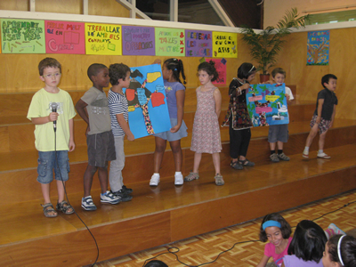 Els representants de les classes de 4t presenten els seus murals. |