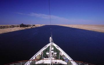 Suez it's a city situated between two seas with a very important port. There a ship is