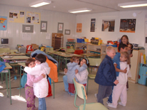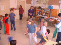 Nens de totes les edats formavem grups de catorze i passàvem per diferents aules i pati per fer les proves que ens havien preparat les mestres. Ens hem fet un fart de jugar, vigilats i mimats pels més grans.