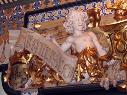 DECORACIÓ INTERIOR on apareix el nom del propietari de la botiga i l'escut de Mataró.