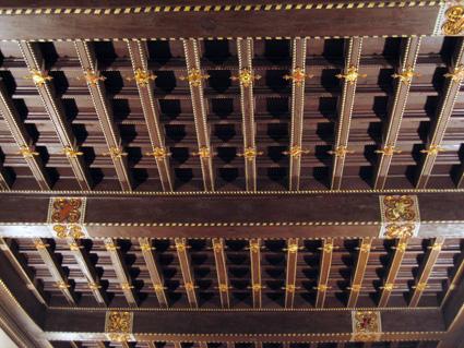 | Enteixinat del SOSTRE del SALÓ DE SESSIONS ( 1893 ) fet creuant bigues de fusta decorades amb sanefes i escuts. | Order |
