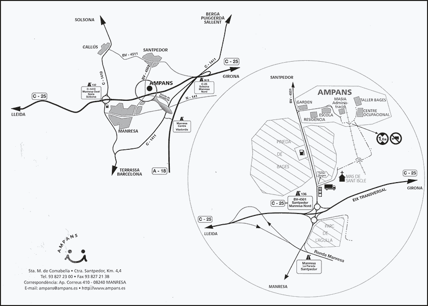 | Lloc:C. Jeroni de Moragas (Ampans) ctra. de Manresa a Santpedor, km 4,400 08251 Santpedor Tel: 938272300 Coordina: Gemma Estruch |