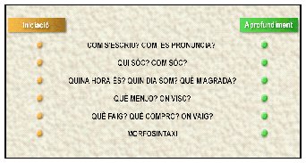 Introducció La Guia per a l'Autoaprenentatge de la Llengua Interactiu, Galí, és un material d'exercitació elaborat conjuntament pels departaments d'Ensenyament i de Cultura de la Generalitat de Catalunya. Galí consta de més de 1300 activitats Clic destinades a treballar continguts de nivell llindar de llengua catalana. Aquest producte multimèdia està pensat per atendre les necessitats pedagògiques dels joves i els adolescents que necessitin treballar nivells elementals de catalàoral i escrit. Pot ser útil a l'alumnat d'incorporació tardana, a l'alumnat amb problemes d'aprenentatge o altres necessitats educatives especials. Continguts El contingut està estructurat en sis blocs temàtics, organitzats en dos nivells: d'iniciació marcat de color taronja, i d'aprofundiment, marcat de color verd. Cada bloc està dividit en diversos subgrups temàtics (equivalents a sessions) que van desenvolupant cada tema a situacions diverses. Tema 1: Com s'escriu? Com es pronuncia?