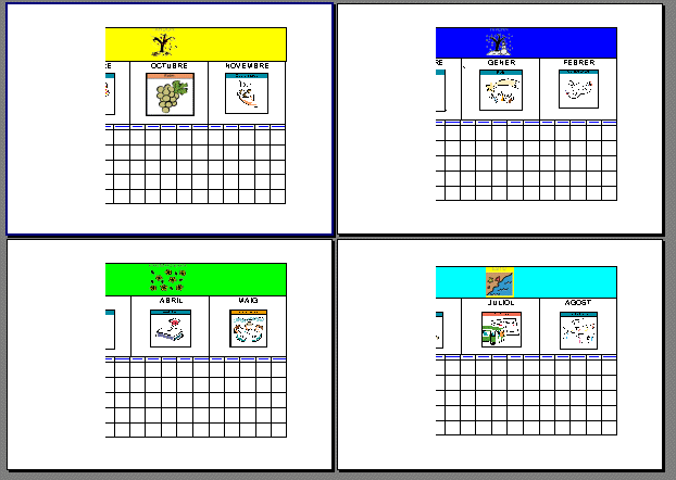 Construcció de plafons de comunicació amb l'ordinadorA partir del MIC, de les icones SPC i el Word es varen construir uns plafons temàtics sobre el calendari, el material escolar i els menjars. Els documents finals són un sfitxers Word que es poden editar i modificar. Els plafons són taules on a cada cel·la s’ha inserit una imatge i un text. Aquests plafons es poden imprimir i els alumnes els utilitzaran en format paper.