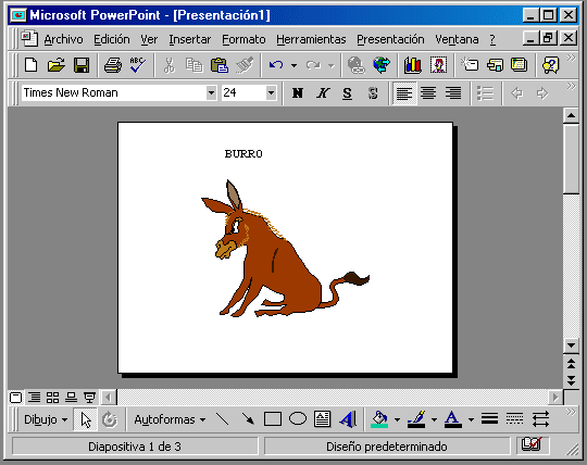 Posar una imatge amb el menú Insertar | Imagen | Desde archivo, escolliu el fitxer i fer clic a Insertar. Feta la primera diapositiva heu de preparar les altres amb el Menú Insertar | Nueva diapositiva, on escolliu el format en blanc fent doble clic. D'aquesta manera anireu afegint diapositives noves fins a completar totes les escenes de la història. Podeu desar la presentació amb el menú Archivo | Guardar i veure-la amb les opcions del menú Ver | Presentación con diapositivas o amb el menú Presentación | Ver presentación.