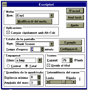 - en el grup Principal activar el Tauler de Control i executar l'opció Escriptori