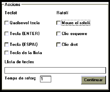 - Una tecla de la llista: en aquest cas cal escriure una sèrie de caràcters que identificaran les tecles. L'ordinador reaccionarà quan es premi qualsevol dels caràcters de la llista.
