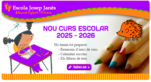 Benvolgudes famílies, ja hem començat amb els preparatius del proper curs. Teniu la informació a la secció "CURS 25/26" d'aquesta pàgina web: llistat de llibres, aportació de material/excursions i calendari escolar.