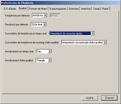 Qualitat. Podeu triar la qualitat de l'enregistrament. Per a