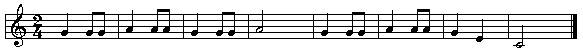 - Introduïu a l'ordinador la peça següent, però utilitzant els signes de repetició en els fragments que siguin exactament iguals. Investigueu com s’editen el signes d’inici de repetició i final de repetició.