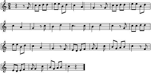 - Write the following piece into the computer using the repeat signs for the bars that are exactly the same. Find out how to edit the begin repetition and end repetition signs.