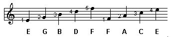 - Naming the notes: on the lines: E, G, B, D, F; in the spaces F, A, C, E. Write them in to the editor and memorise their names: